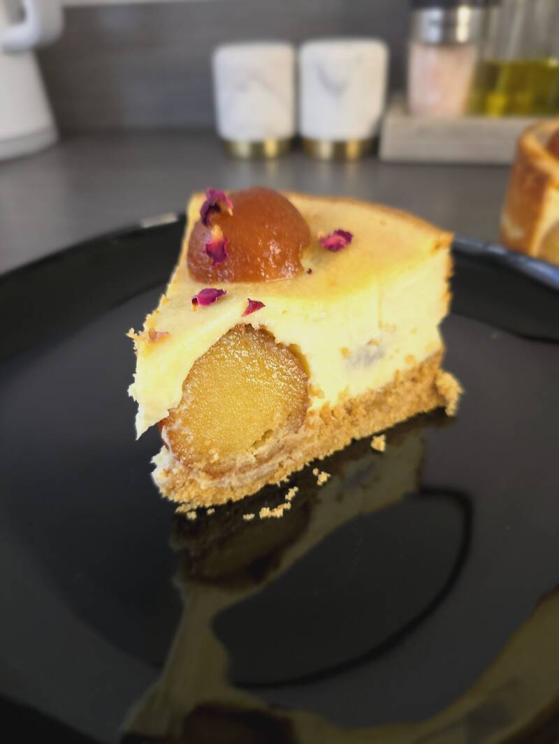 - Decoreer je cheesecake met wat stukjes gulab jamun en eventueel wat rozenblaadjes en slagroom. Geniet ervan! 🍰🌹