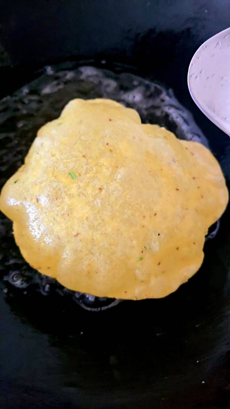 - Doe in een ruime pan genoeg olie om de puri's te bakken.